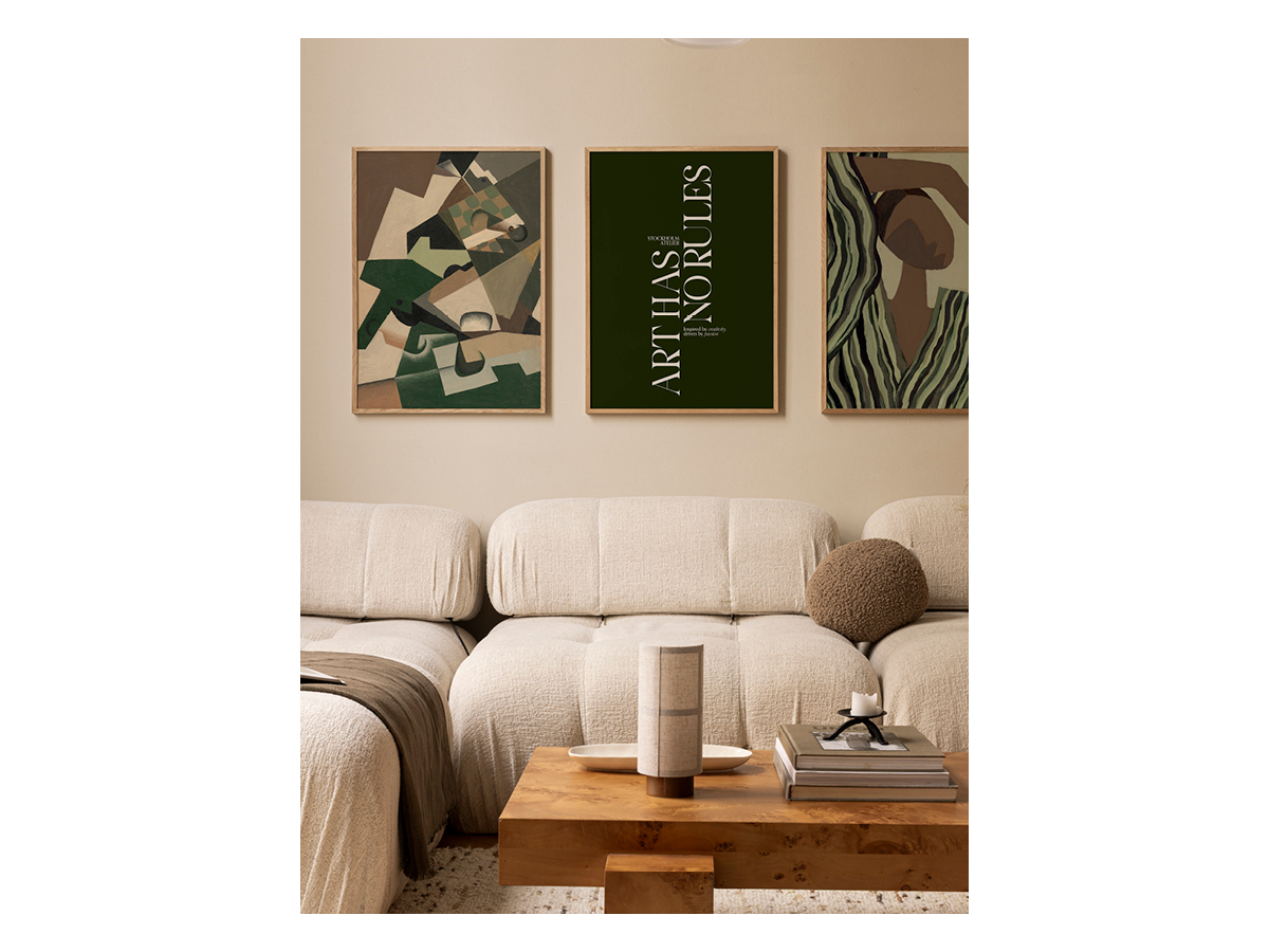 With this arrangement the artworks create a relaxed, harmonious look that is perfect over a sofa or bed.