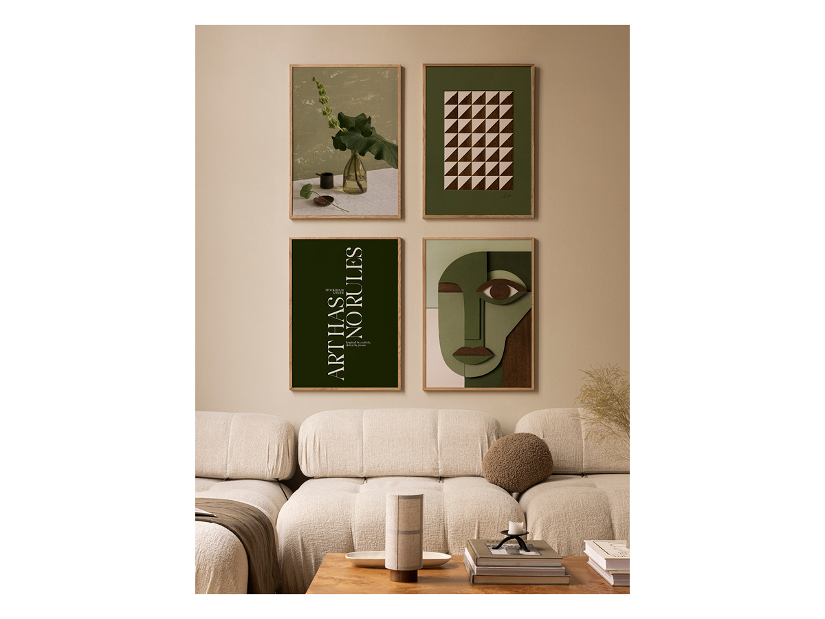 With this arrangement the artworks create a relaxed, harmonious look that is perfect over a sofa or bed.