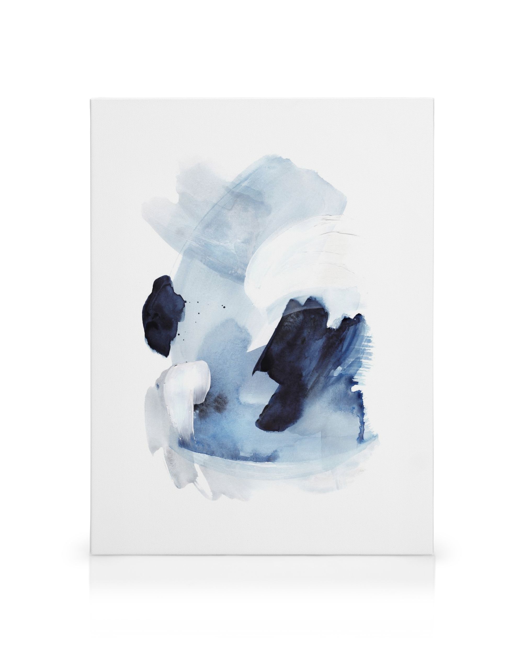 Un lienzo con pinceladas azules y negras sobre un fondo blanco. Una pieza de arte perfecta para la pared de su sala de estar o dormitorio.