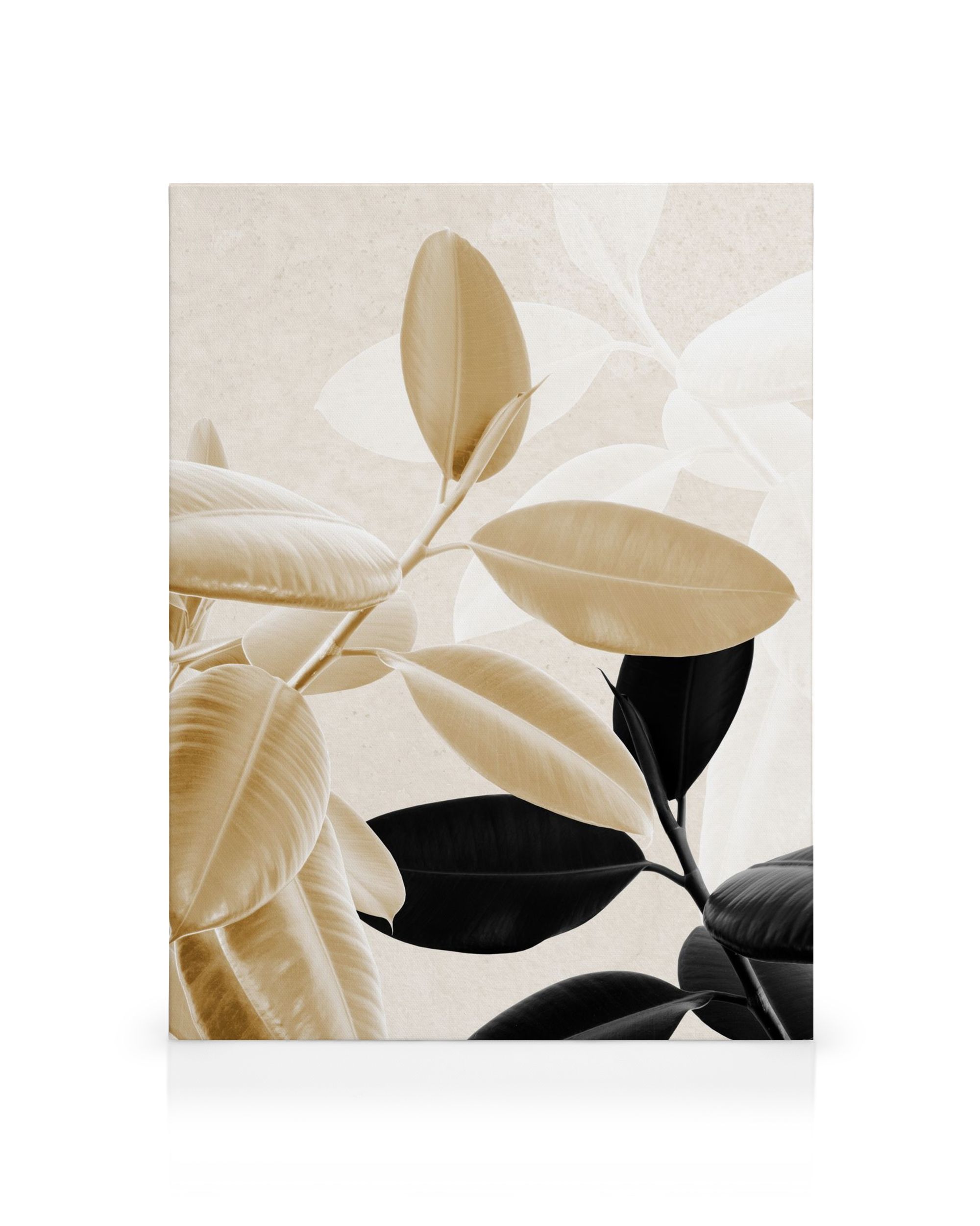 Desde $29.96Un lienzo que muestra hojas superpuestas en beige y negro sobre un fondo beige texturizado. Algunas hojas son translúcidas, creando un contraste intrigante entre tonos claros y oscuros.