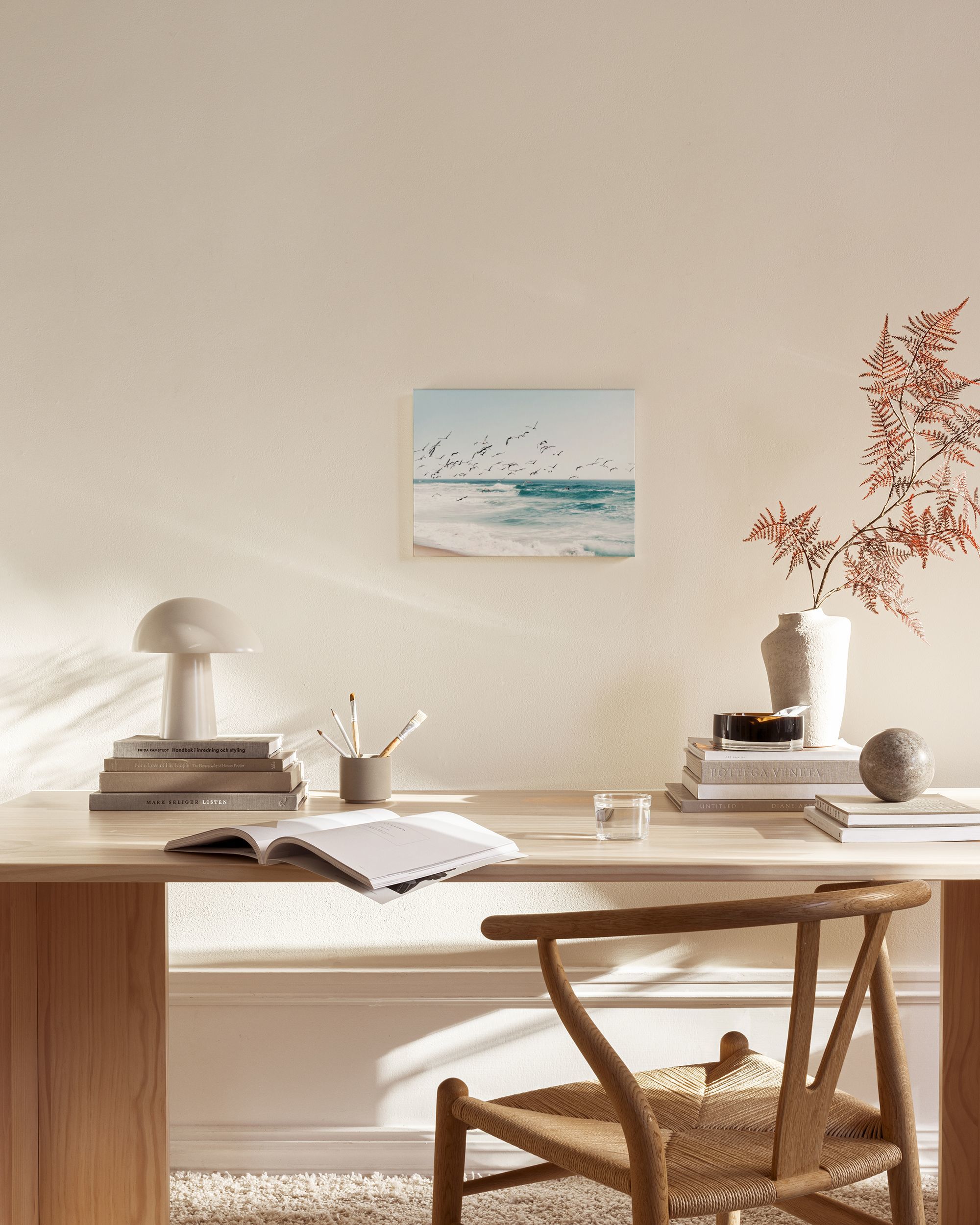 Desde $29.96Un impresionante lienzo que representa aves volando sobre un mar turquesa. El cielo azul y la playa de arena completan esta serena obra de arte del paisaje marítimo, perfecta para tu galería de arte.