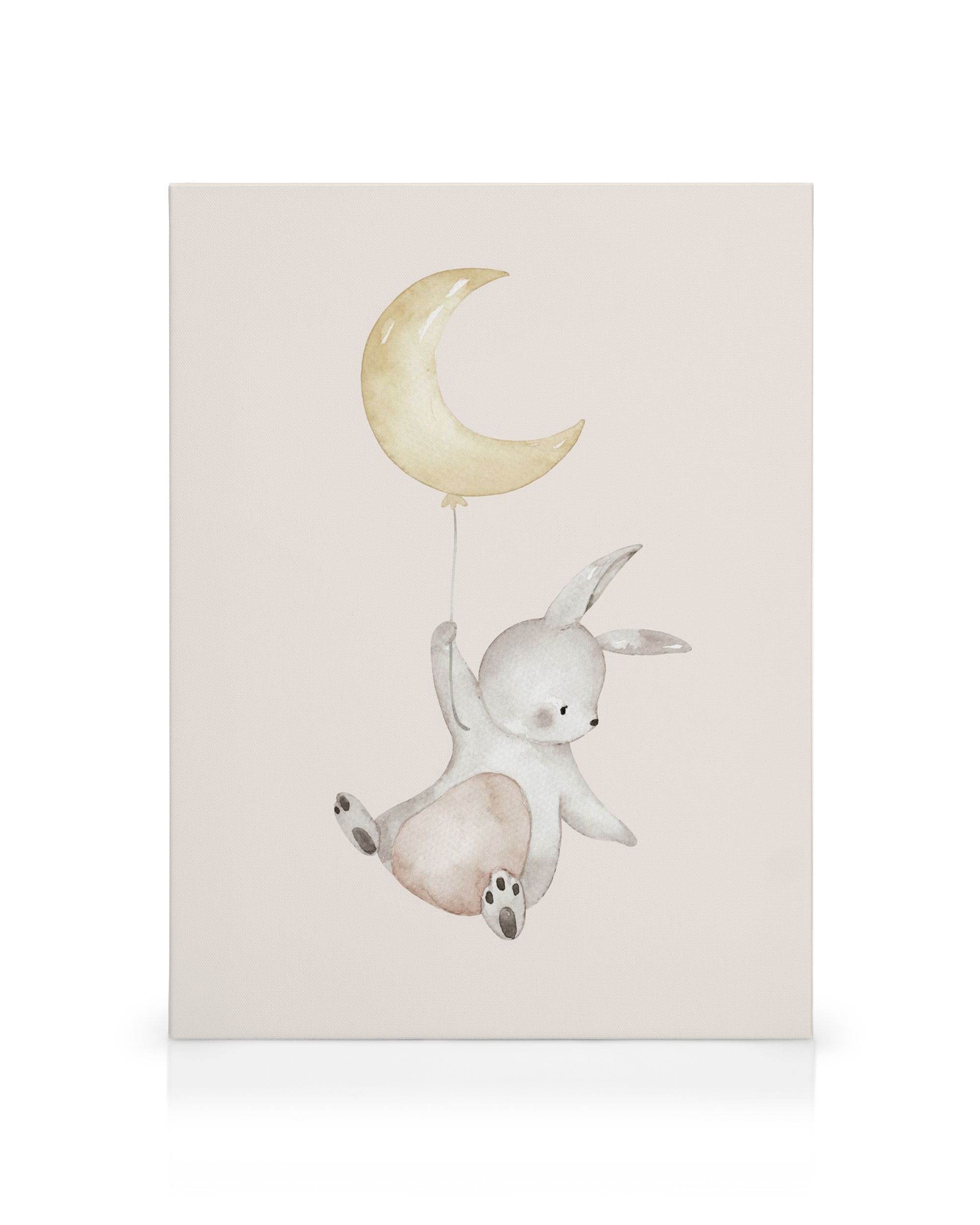 Desde $45.95Encantador Lienzo que presenta un lindo conejo gris colgando como un globo de una luna creciente. Con un fondo rosa claro, este arte de pared es perfecto para una guardería o habitación infantil.