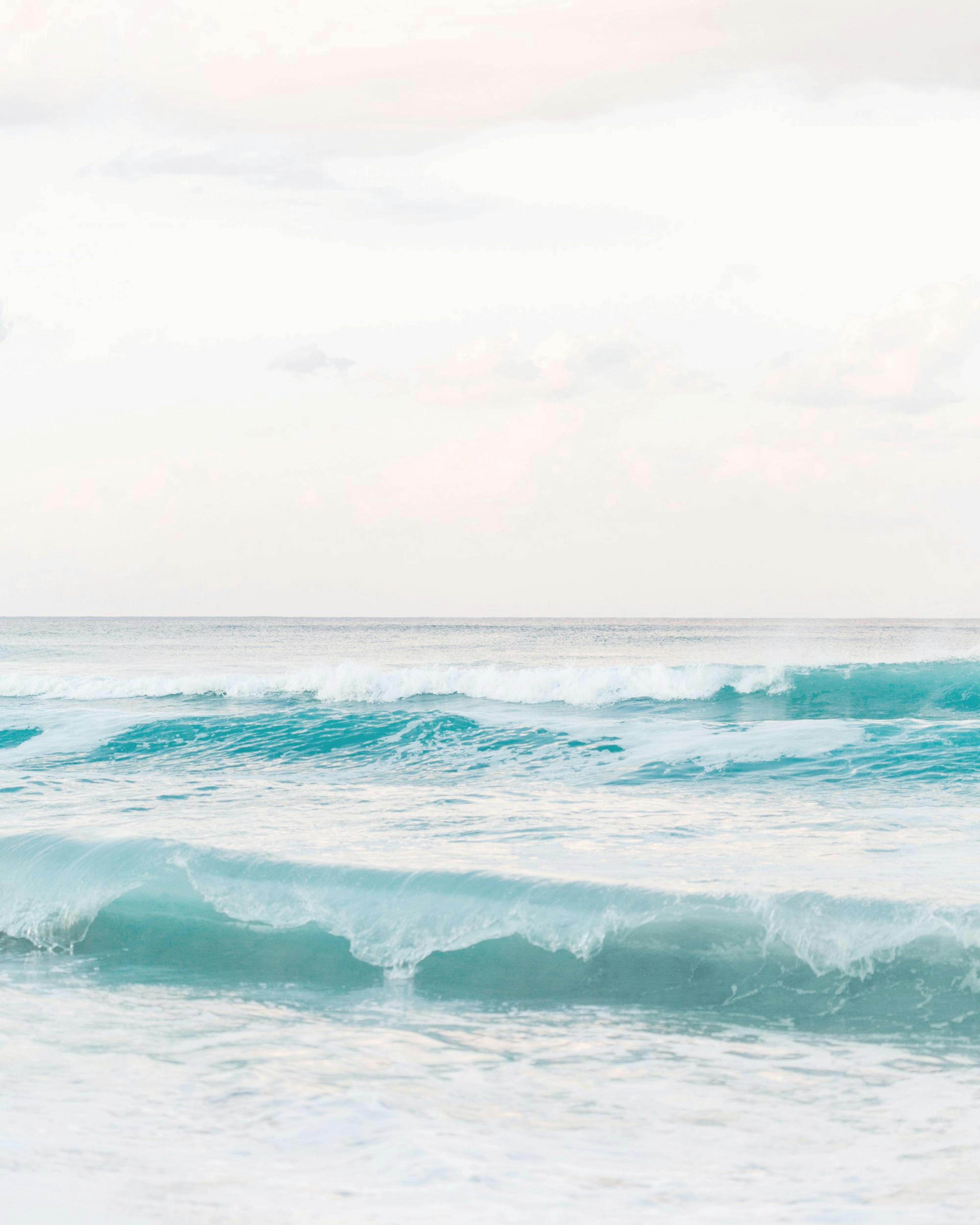 Póster de una playa con espuma de mar en tonos pastel. Esta es una fotografía con un paisaje relajante que encaja en casi cualquier estancia.