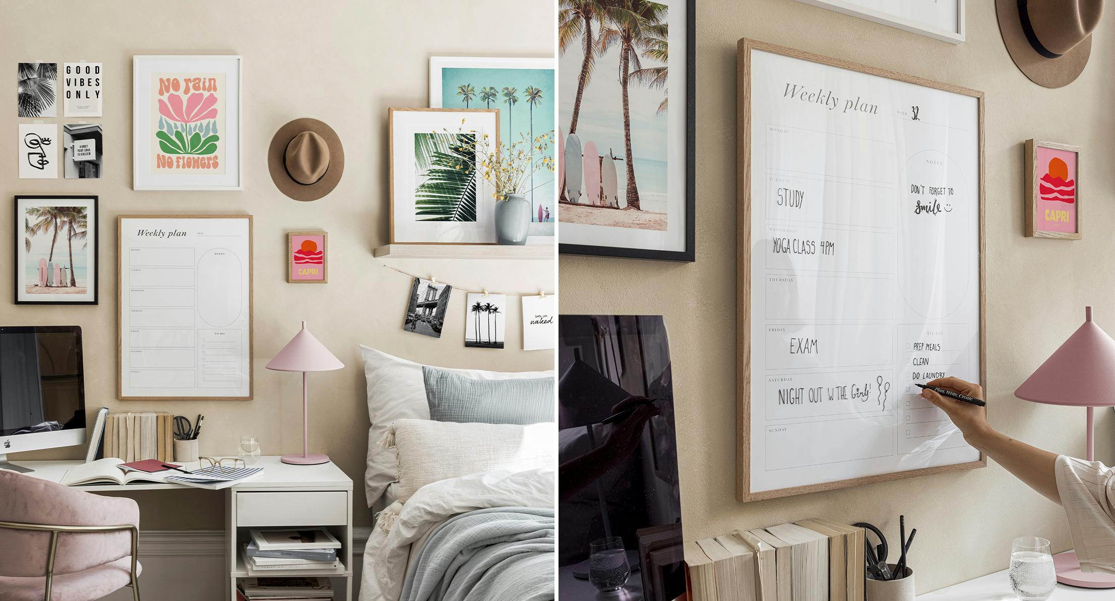 ¡Ten la habitación estudiantil con más estilo en tus pasillos con originales obras de arte y planificadores!