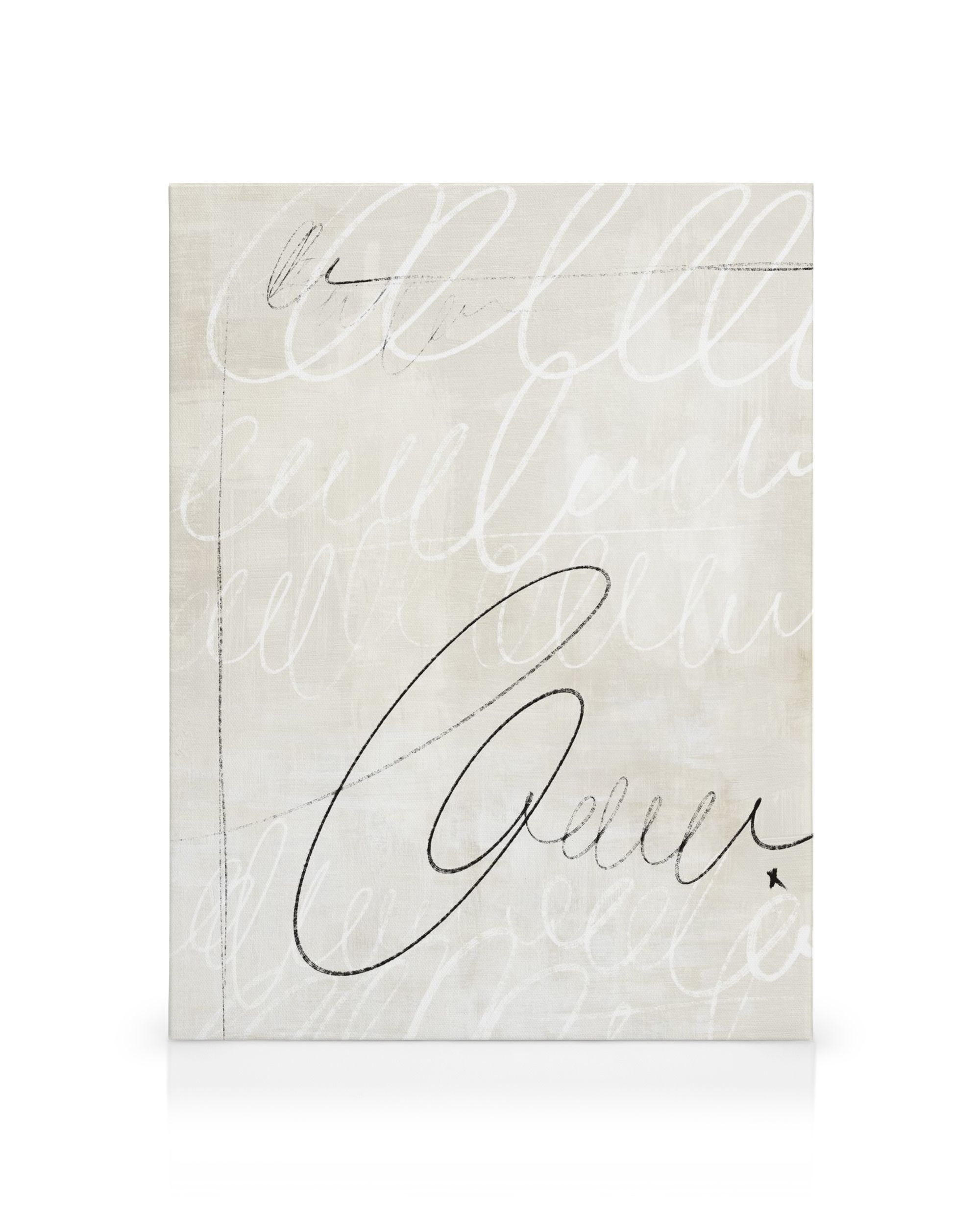 From $29.96A canvas print with a beige and white background, featuring faint handwritten cursive patterns in light brown. A small black star is on the bottom right side of the canvas.
