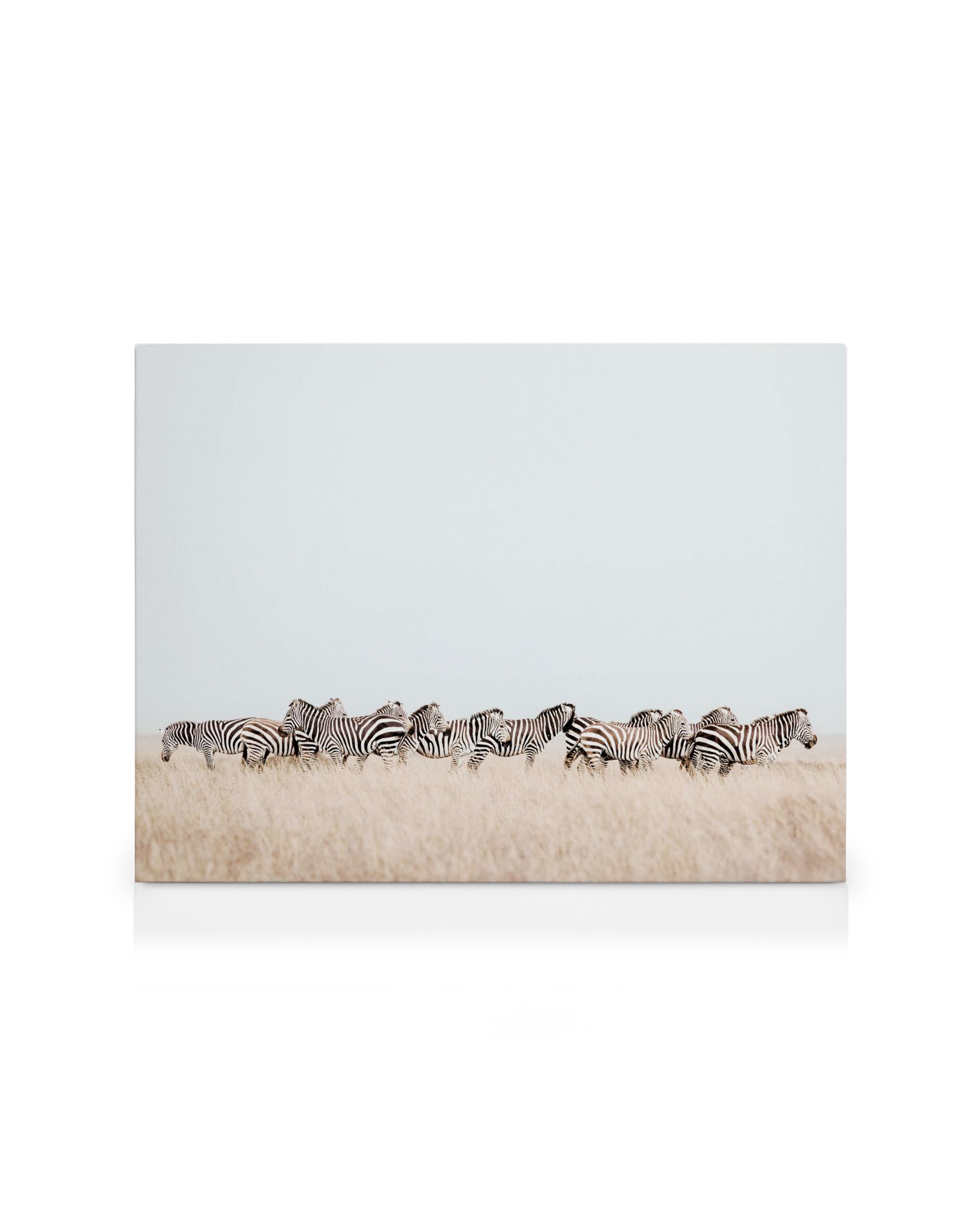 From $29.96Beautiful photo canvas print of zebras standing in rows against a blue and beige background. The perfect wall art for any gallery wall or living room.