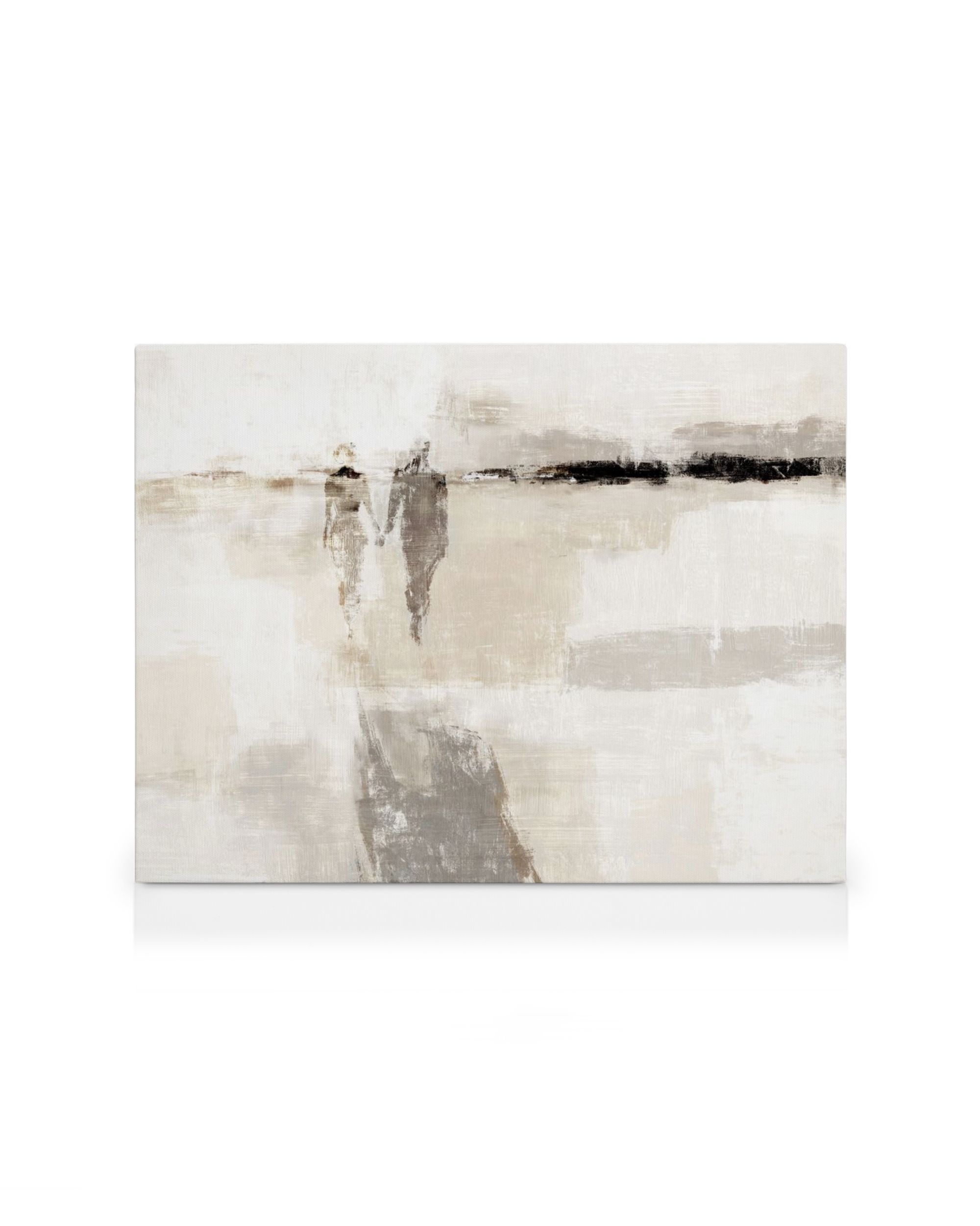 From $16.48Abstract canvas print depicting two figures walking and holding hands. The dreamy look is created with textured strokes of white, beige, grey and black paint. A perfect piece of wall art for your home.