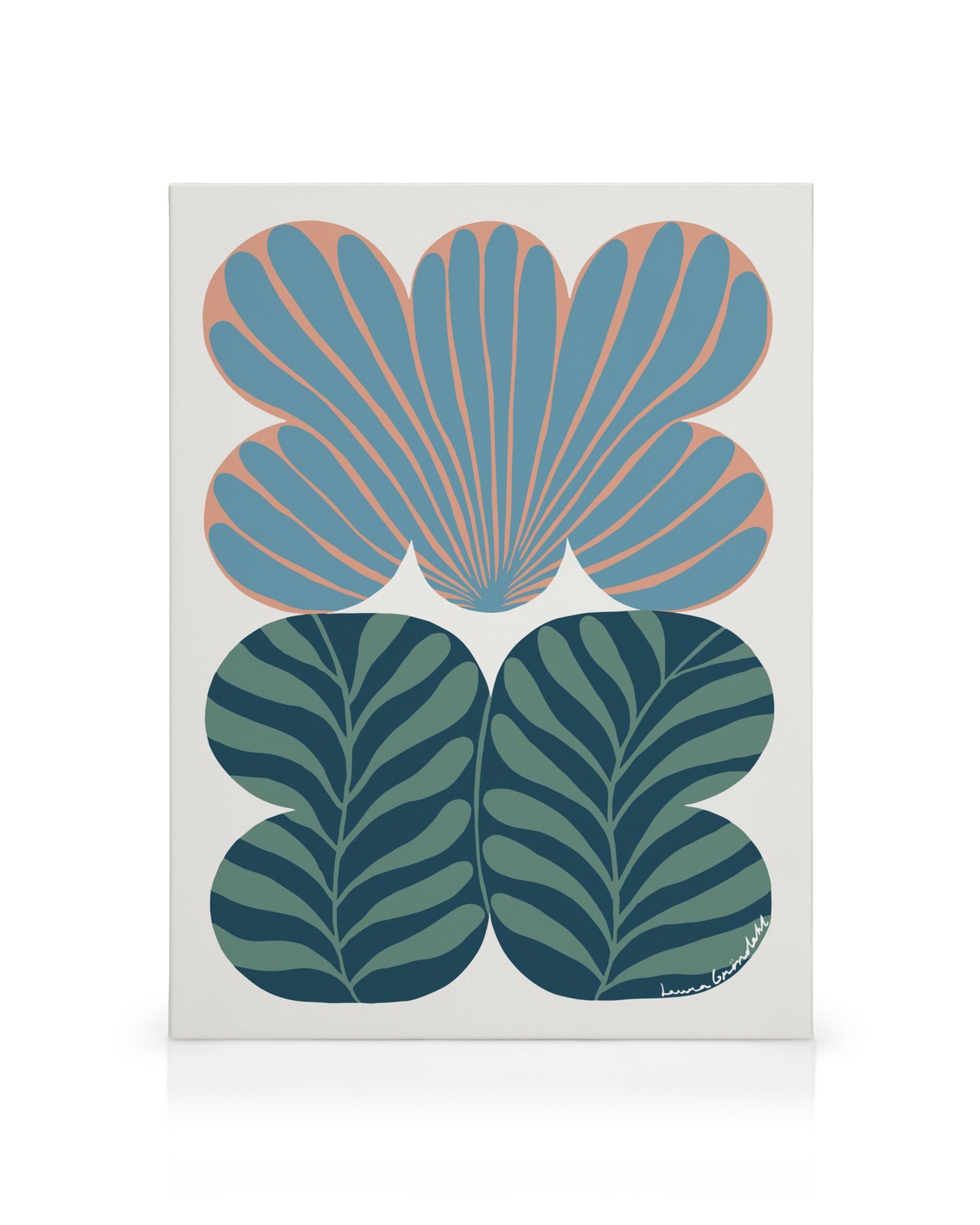 From $39.95A stylised print featuring three unique leaves in vibrant colours on a canvas, perfect to hang on your wall. The eye-catching shapes and visible veins stand out against the light background, creating a captivating piece of wall art ideal for any gallery wall.