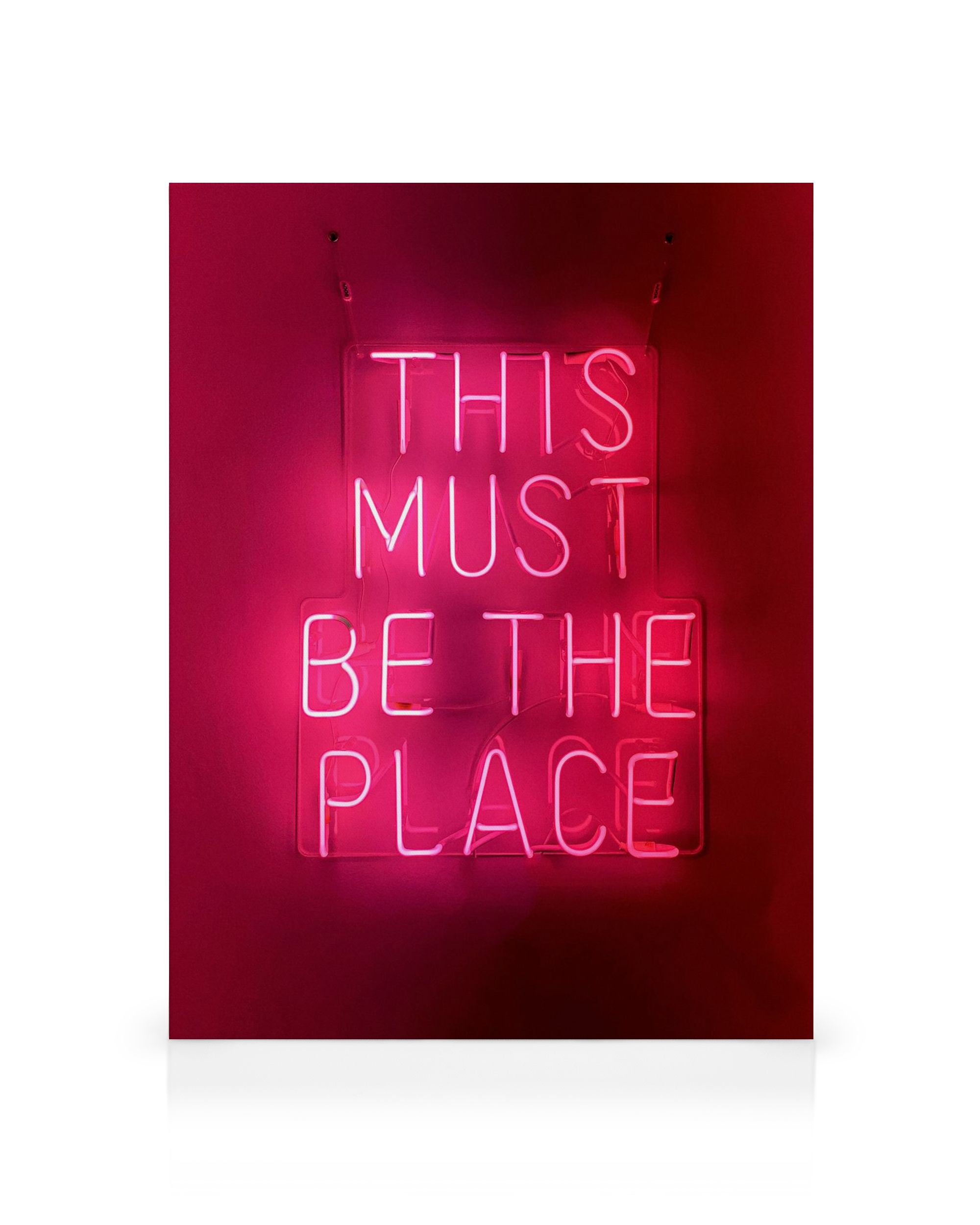 From $29.96Brighten up your space with this bold canvas print featuring a neon sign that reads "This Must Be The Place" in bright pink against a dark pink wall.