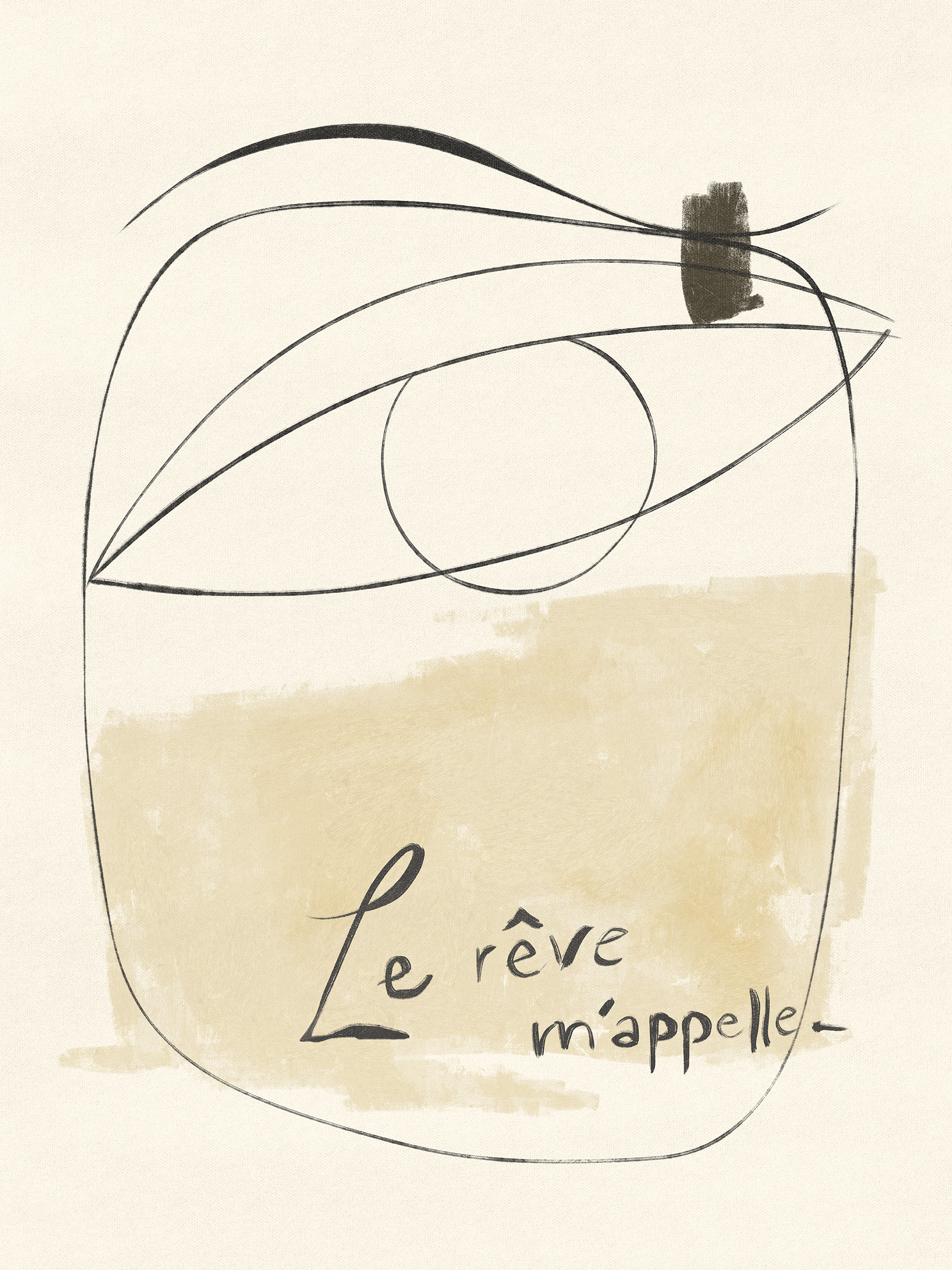 From $29.95A minimalist print with a simple line drawing of an eye, curved lines and abstract brushstrokes on a beige background. The text "Le rêve m'appelle" adds an artistic touch to this elegant wall art.
