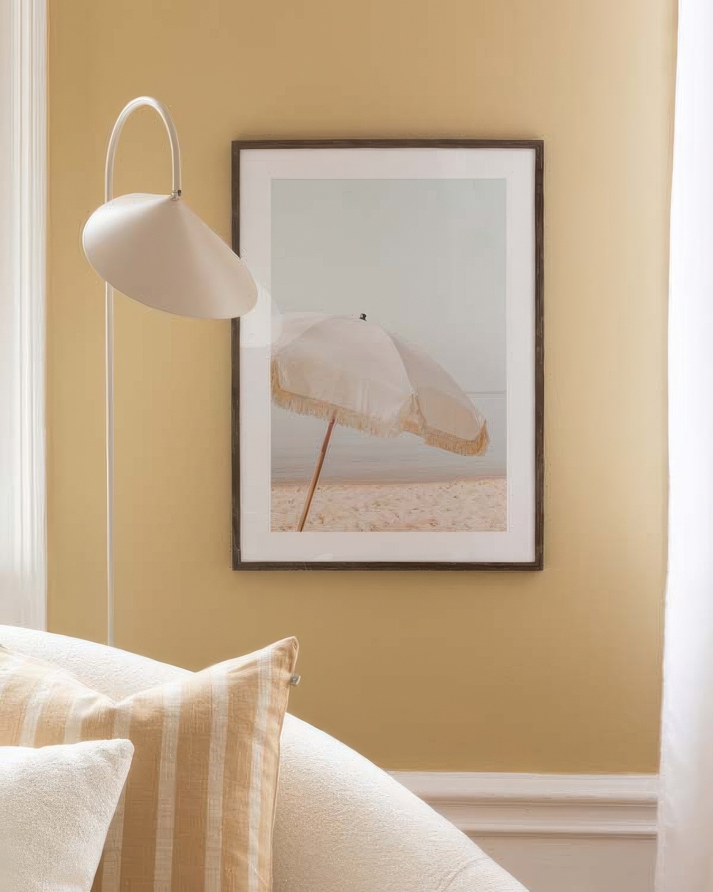 From $17.97Photograph of a light parasol with fringes, with the ocean in the background. Create a calm feel in your home with photo art in serene hues!