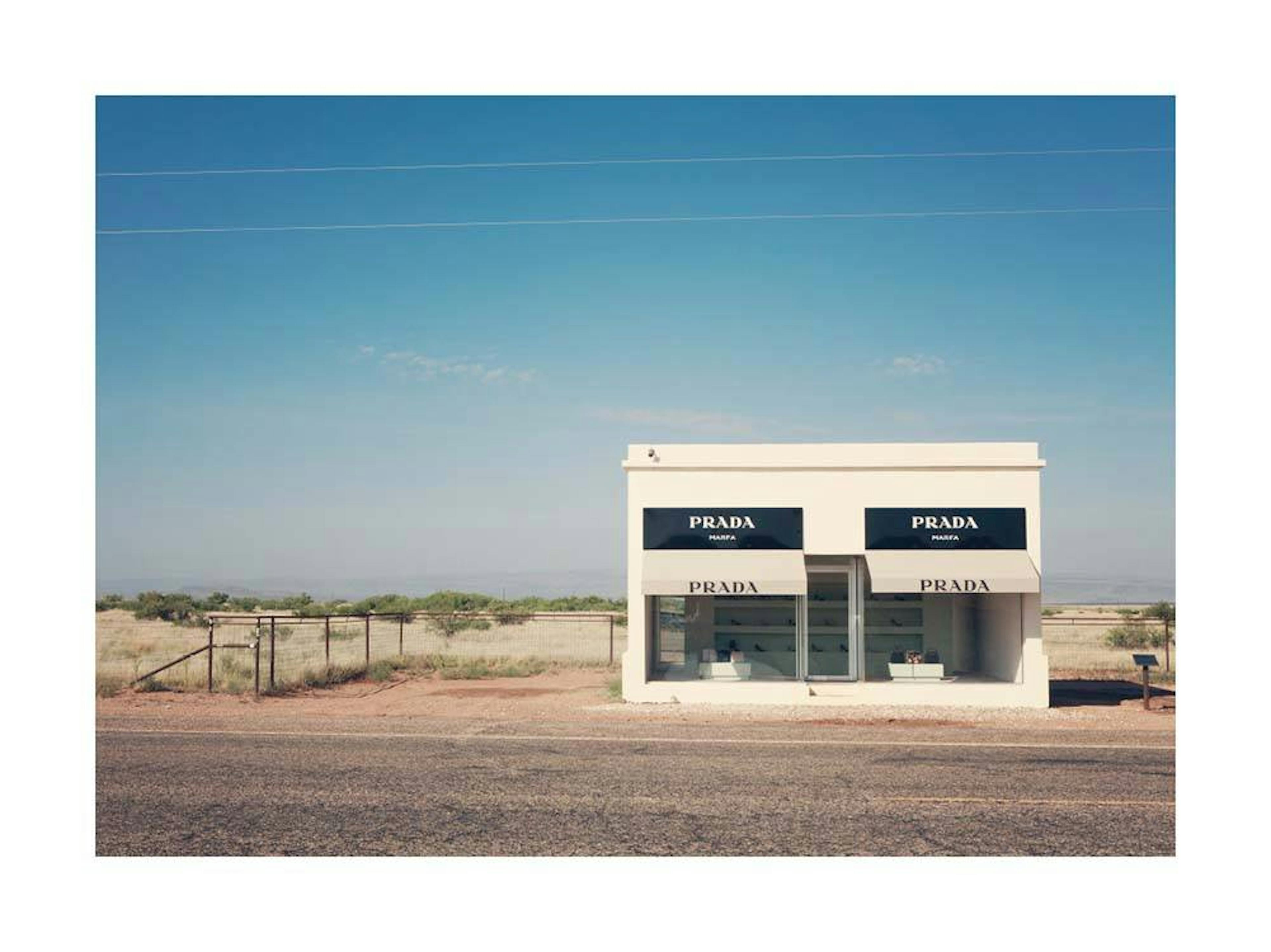 From $10.78Photograph of the famous fake Prada Marfa shop sculpture by Elmgreen & Dragset, located in the desert in Texas, US. This unique and well-known art installation has been noticed in various magazines and we understand why!