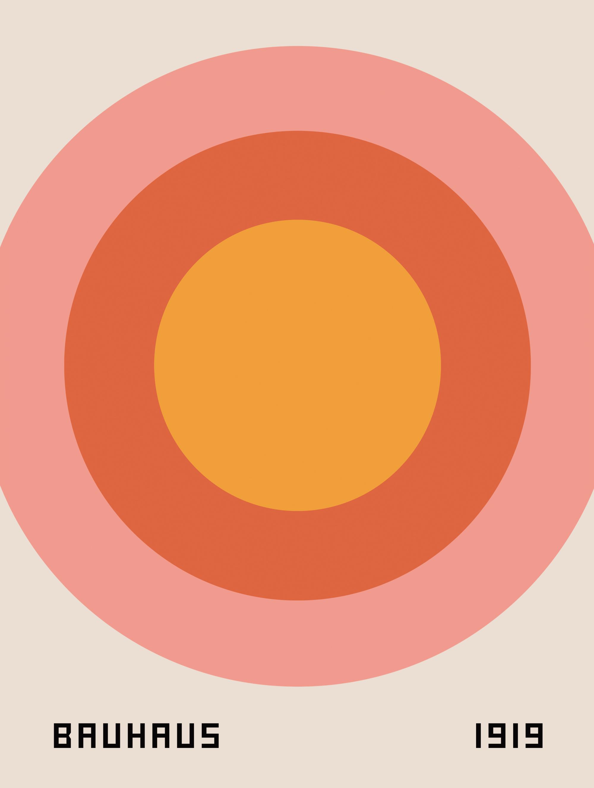 Art print with circles in retro pink, orange and yellow colours. The classic Bauhaus style is timeless and chic.