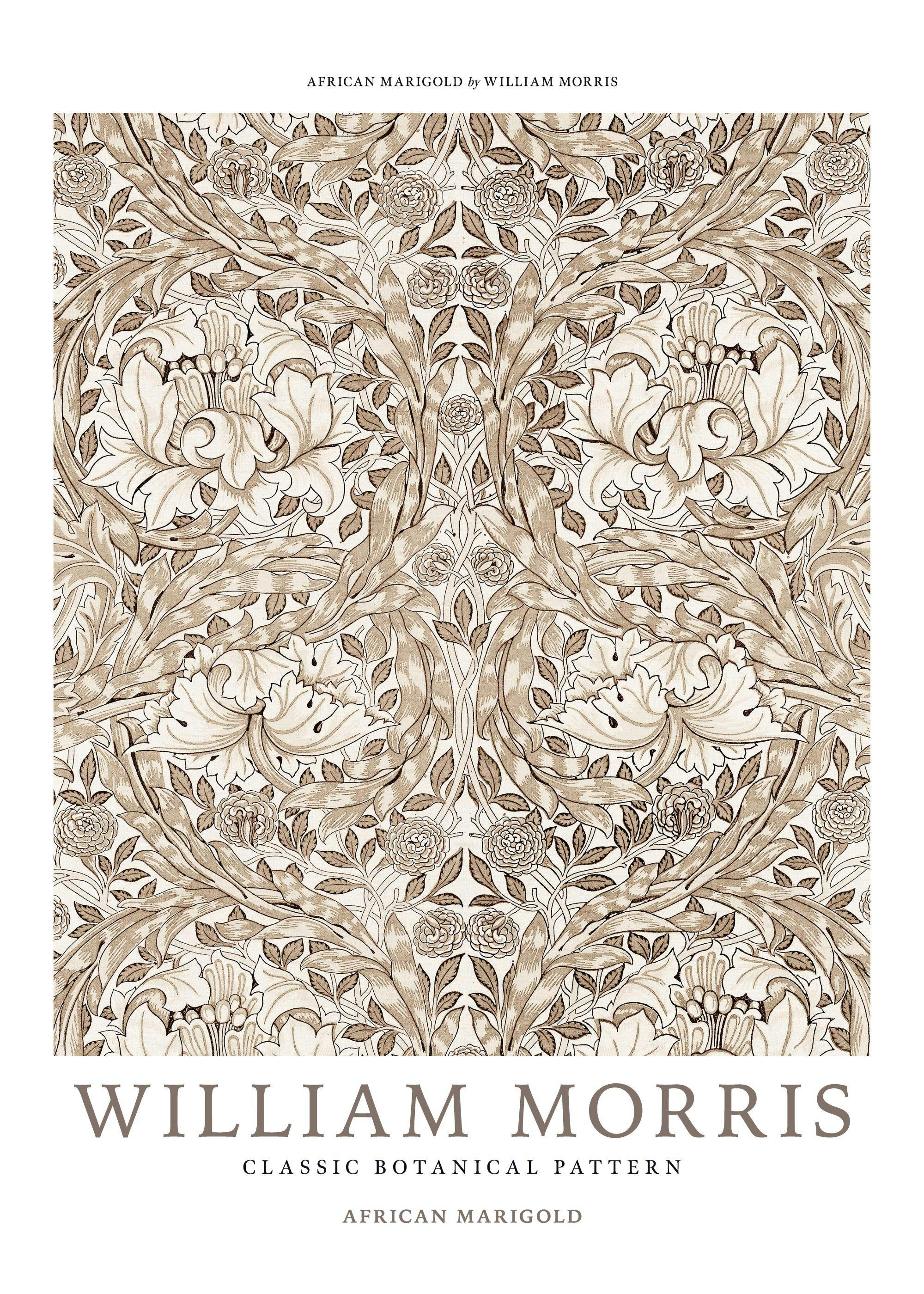 Poster by William Morris of a beige branch against a white background with the text "William Morris Classic Botanical Pattern Beige Brach by William Morris". Create a modern style in your home decor with this admirable art print!