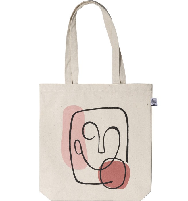 Handpicked design Tote bag in natural beige with an illustration of an abstract face and beige shapes. Add a tote bag to your wardrobe for a useful and stylish accessory! The tote bags in our limited edition collection are printed in Sweden and made of 100% recycled cotton.