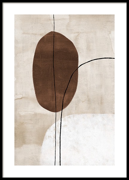 Handpicked design Abstract painting with brown, black and white shapes and pencil strokes on a beige background. This print together with its matching twin Art Shapes No2 makes a great centerpiece for a modern home!