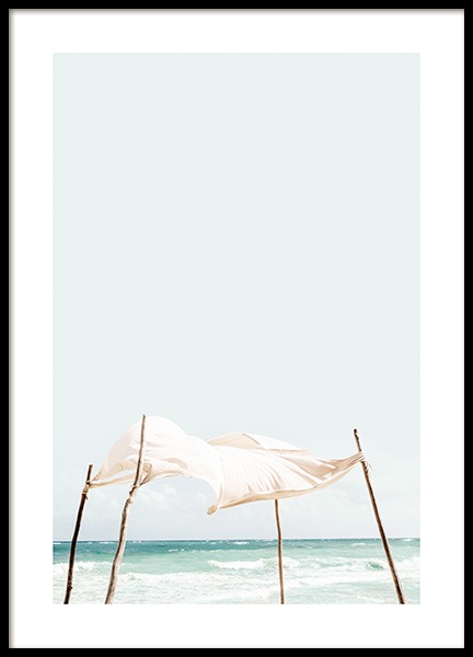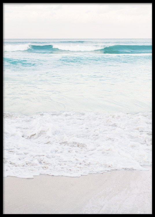 Photograph of a beach and the ocean in pastel colors. This poster will bring a calm and relaxing feeling to your walls. Match this poster with one of our popular text prints for a nice combination.
