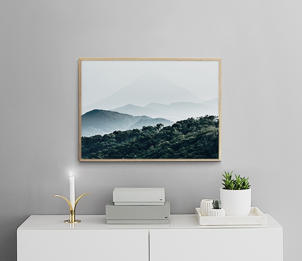 Handpicked design Print with a beautiful nature image, a photo of high green mountains. Nature designs are always right and work with all interior designs. It can also be quite lovely to combine a design like this with one or more typography prints with nice quotes. That way you can create a mindfulness-inspired picture wall. Get inspired and create your dream wall.